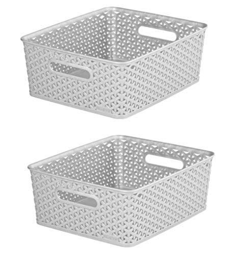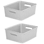 Set Of 2 13L Curver Nestable Plastic Rattan Storage Basket