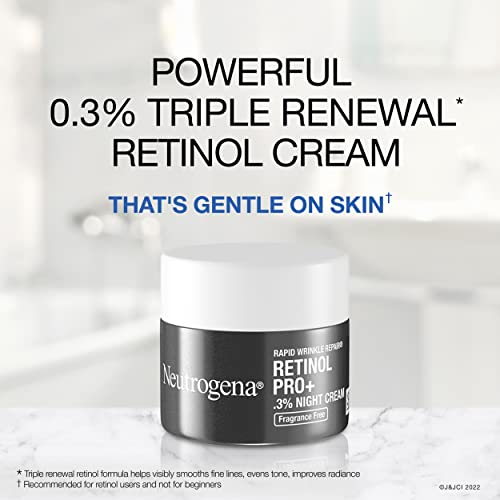 Neutrogena Rapid Wrinkle Repair Retinol Pro+ 0.3% Night Cream targets the look of deep wrinkles & stubborn dark spots. This potent face & neck moisturizer is clinically proven to fight signs of skin aging & provides softer, smoother skin instantly. The anti-aging cream contains 0.3% retinol, a form of vitamin A & dermatologist-proven powerhouse ingredient. This cream is formulated with patented technology & expertly stabilized to deliver visible results, reduce the appearance of fine lines & wrinkles & diminish the look of dark spots. With regular use, skin starts to feel hydrated and look brighter & healthier after just 1 week. See firmer-looking skin within 4 weeks. This cream is non-comedogenic, suitable for all skin tones, & formulated to be fragrance-, paraben-, mineral oil-, dye- & phthalate-free. From a dermatologist-recommended brand, Neutrogena Rapid Wrinkle Repair Night Cream makes a great addition to your daily anti-aging skin care routine. Get more youthful-looking skin.